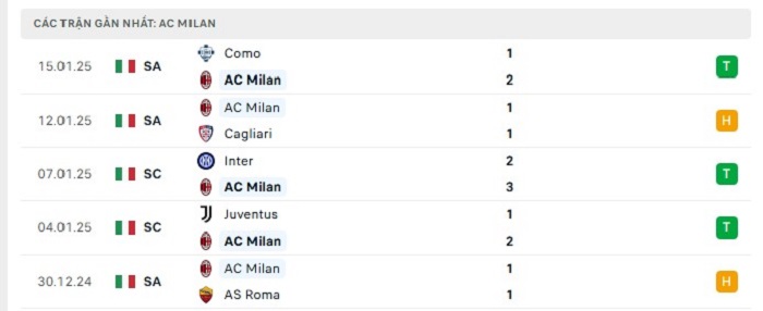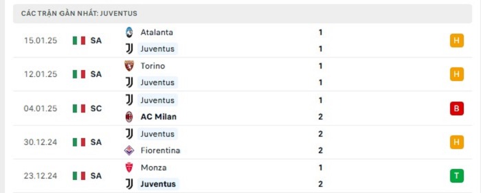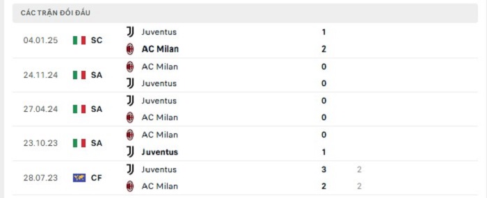 Bảng  bóng đá trận đấu Juventus vs AC Milan