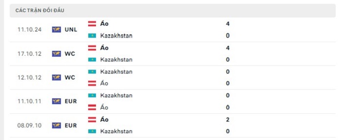 Lịch sử đối đầu của Kazakhstan vs Áo