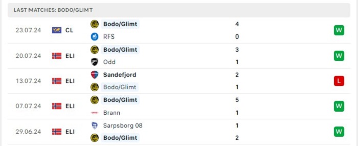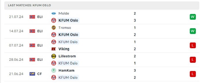 Phong độ gần đây KFUM Oslo vs Bodo Glimt