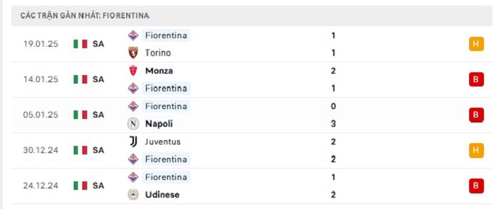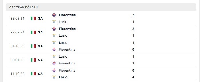 Lịch sử đối đầu của Lazio vs Fiorentina