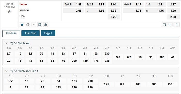 Soi kèo tỷ số Lecce vs Hellas Verona