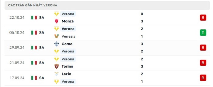 Bảng bóng đá trận đấu Lecce vs Hellas Verona