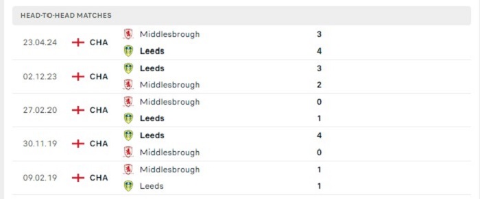 Lịch sử đối đầu của Leeds United vs Middlesbrough