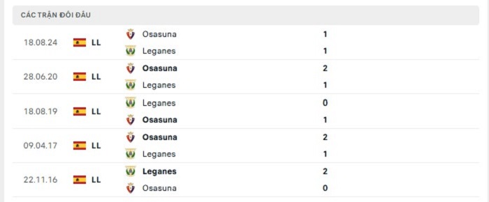 Thống kê có thể thấy được trong quá khứ những trận gặp nhau giữa Leganes và Osasuna trước đây vốn cũng không có quá nhiều bàn thắng ghi được, đặc biệt là trên sân nhà của Leganes trong 4 lần gặp nhau trước đây của hai đội tỷ số trận đấu cũng chỉ từ 2 bàn thắng ghi được trở xuống. Hơn nữa với Osasuna thì hàng công trên sân khách của họ cũng không thực sự tốt ở giải đấu năm nay, do vậy mà tỷ số trận đấu sắp tới của hai đội cũng sẽ khó có thể xuất hiện nhiều trong trận.