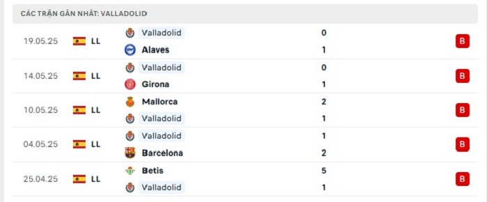 Lịch sử đối đầu của Leganes vs Real Valladolid