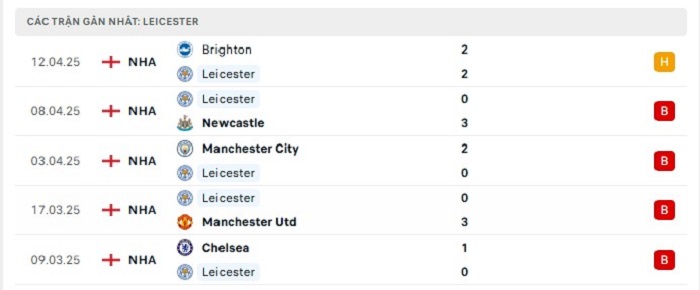 Lịch sử đối đầu của Leicester City vs Liverpool