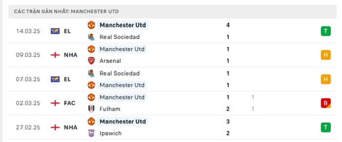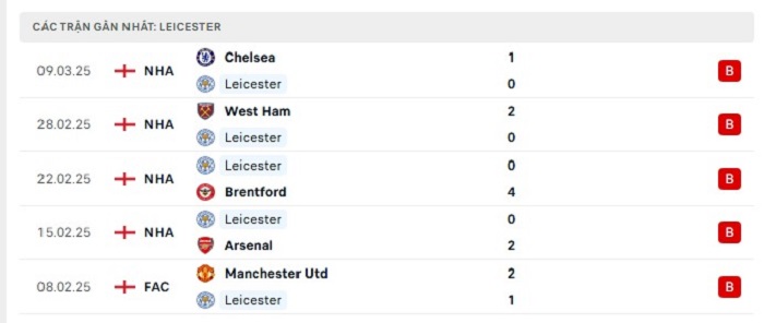Bảng bóng đá trận đấu Leicester City vs Manchester United