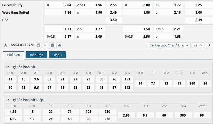 Soi kèo châu Á, kèo chấp Leicester City vs West Ham United