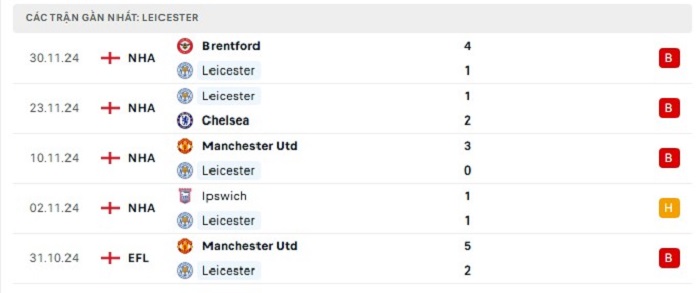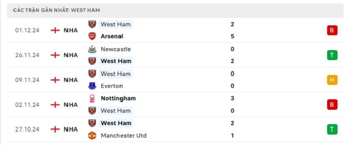 Bảng bóng đá trận đấu Leicester City vs West Ham United