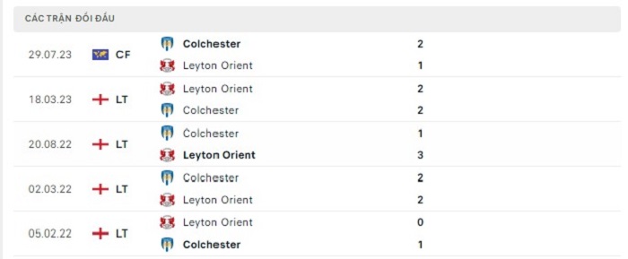 Lịch sử đối đầu của Leyton Orient vs Colchester