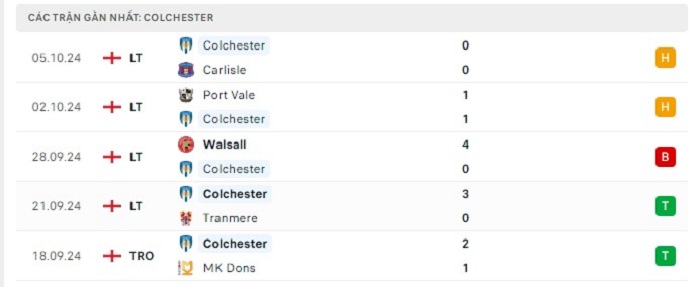 Bảng bóng đá trận đấu Leyton Orient vs Colchester