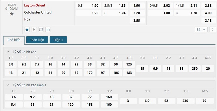 - Dự đoán tỉ số trận đấu Leyton Orient vs Colchester
