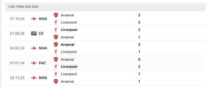 Lịch sử đối đầu của Liverpool vs Arsenal