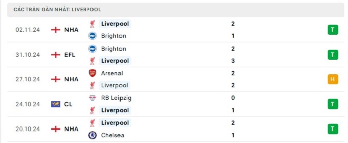 - Phong độ Liverpool