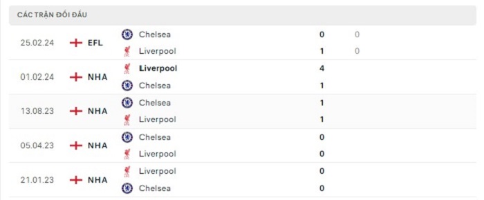 Lịch sử đối đầu của Liverpool vs Chelsea