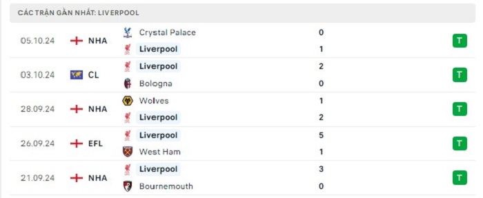 - Phong độ Liverpool