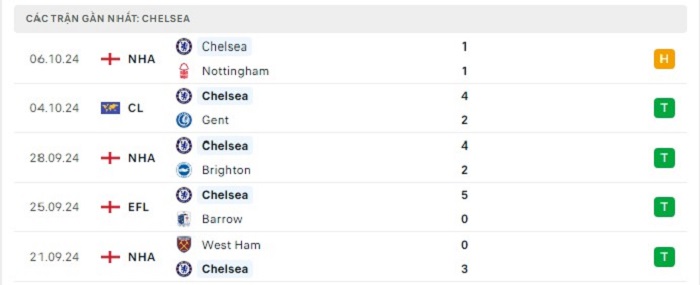 - Phong độ Chelsea