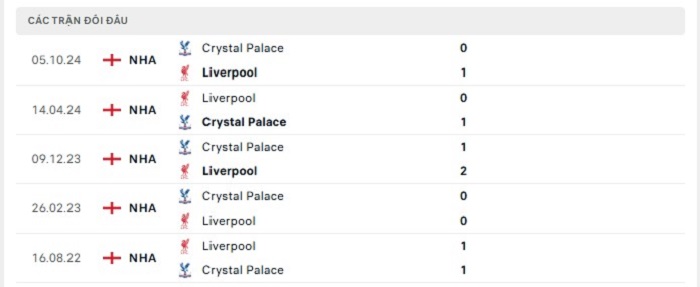 Lịch sử đối đầu của Liverpool vs Crystal Palace