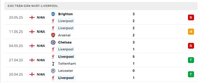 • Phong độ Liverpool