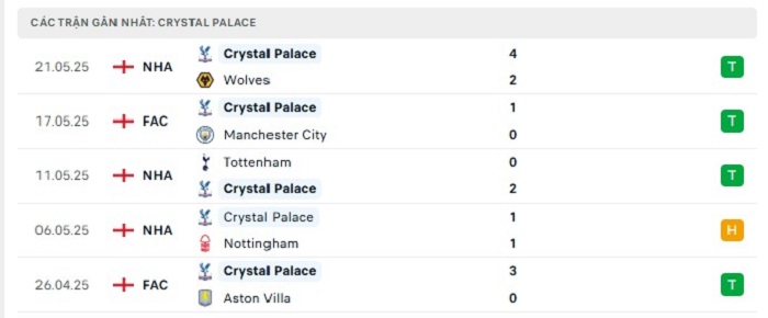 • Phong độ Crystal Palace