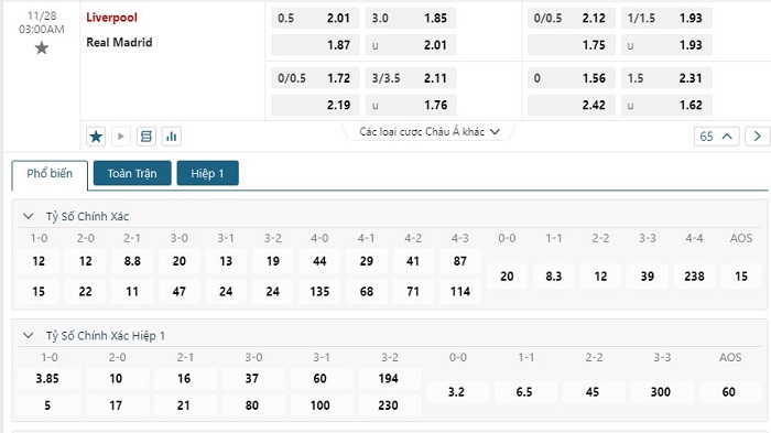 Soi kèo tỷ số Liverpool vs Real Madrid