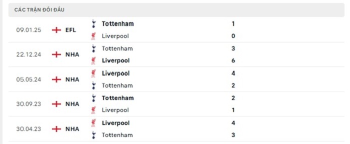 Lịch sử đối đầu của Liverpool vs Tottenham