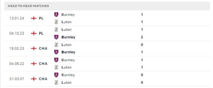 Hai đội đã có tổng cộng 8 lần gặp nhau kể từ năm 2005 cho tới nay, Luton Town chưa biết tới mùi thắng lợi mỗi khi đối đầu trước Burnley khi chỉ có được 4 trận hoà và 4 thất bại theo mốc kèo châu Âu cả trận, điều này cũng có thể thấy được việc đánh bại được Burnley sẽ là nhiệm vụ vô cùng khó khăn với Luton Town ở thời điểm này, chưa kể tới năng lực và đội hình của đội khách ở sân chơi này vốn họ cũng được đánh giá cao, vì vậy mà khả năng thắng kèo châu Âu của Burnley cũng sẽ được sự kỳ vọng nhiều.