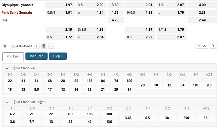 Soi kèo tỷ số Lyon vs Paris Saint-Germain