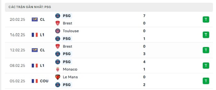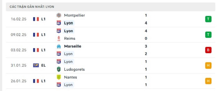 Phong độ gần đây Lyon vs Paris Saint-Germain
