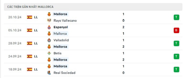 Bảng  bóng đá trận đấu Mallorca vs Athletic Bilbao