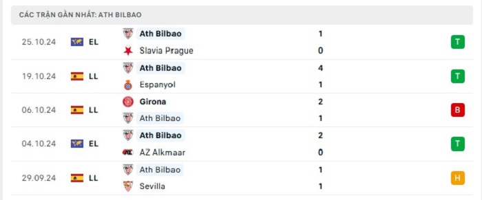 Phong độ gần đây Mallorca vs Athletic Bilbao
