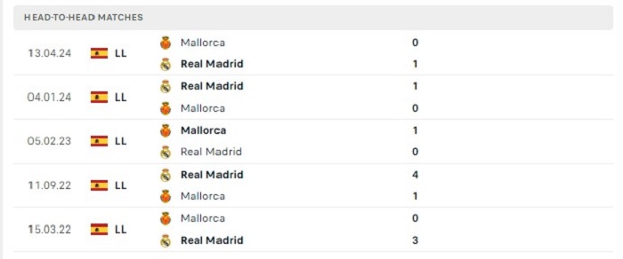 Lịch sử đối đầu của Mallorca vs Real Madrid