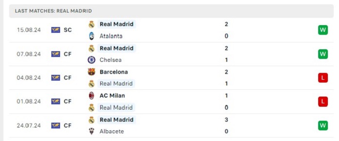 Phong độ gần đây Mallorca vs Real Madrid