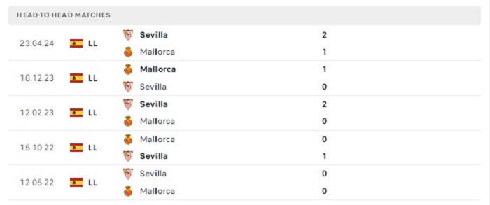 Lịch sử đối đầu của Mallorca vs Sevilla