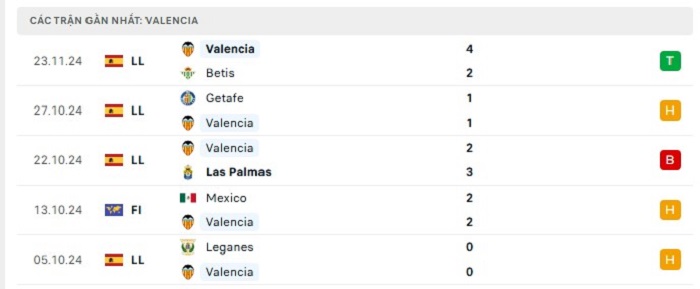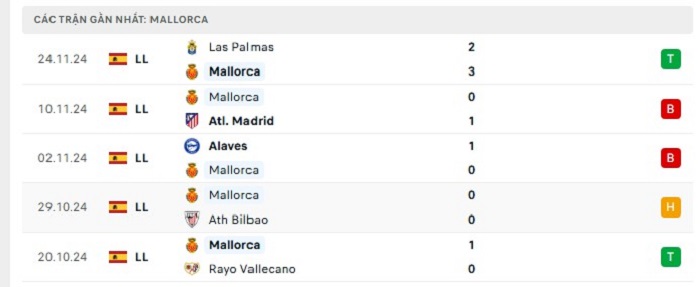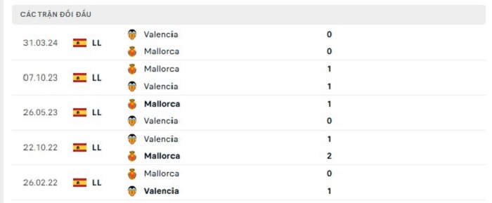 Bảng  bóng đá trận đấu Mallorca vs Valencia