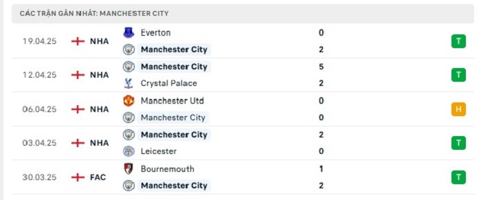 - Phong độ Manchester City