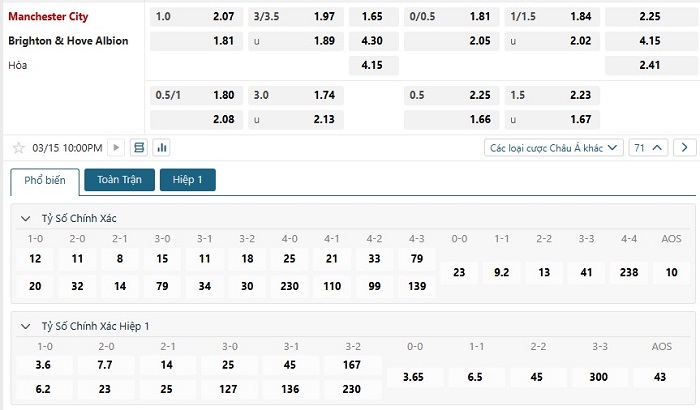 Manchester City vẫn là cái tên được đánh giá cao hơn nhiều so với Brighton hiện nay, điều này đang được thể hiện thông qua mốc kèo châu Á khá cao hiện tại. Thực tế mà nói với Manchester City thì năng lực và sức mạnh của họ so với đối thủ, bên cạnh đó về mặt sân nhà với đội bóng chủ sân Etihad họ vẫn có được những mặt tích cực hơn so với trên sân khách ở mùa giải, chính bởi vậy mà việc có được một chiến thắng trước Brighton cũng là điều đang nằm trong tầm tay của Manchester City tại thời điểm này.