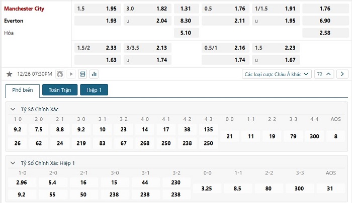 - Dự đoán tỉ số trận đấuManchester City vs Everton