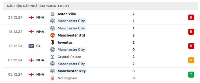 - Phong độ Manchester City