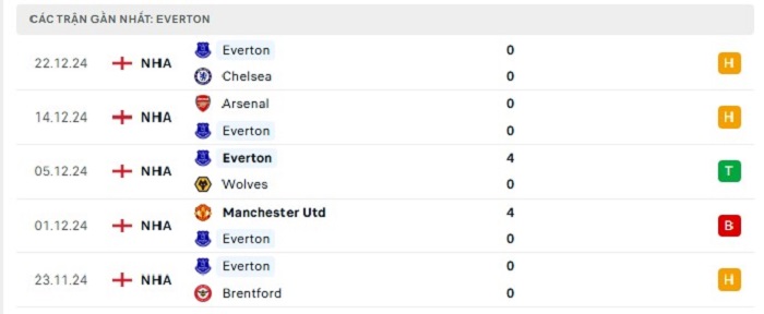 - Phong độ Everton