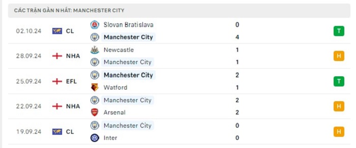 - Phong độ Manchester City