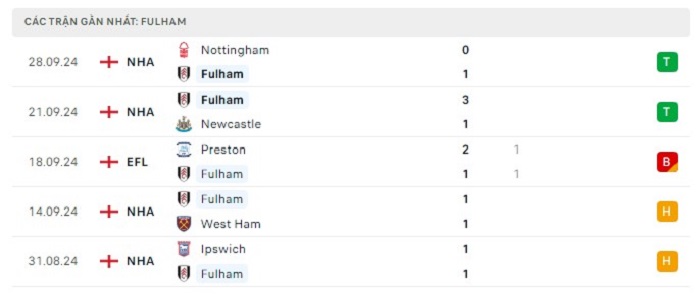 - Phong độ Fulham