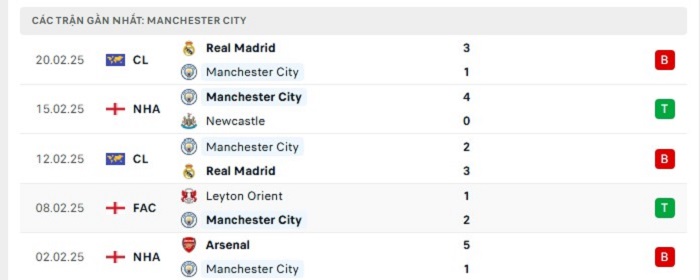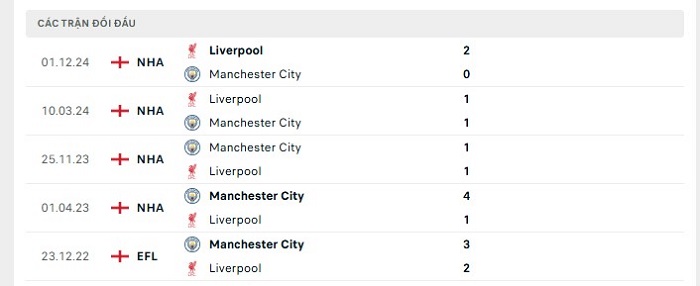 Bảng  bóng đá trận đấu Manchester City vs Liverpool