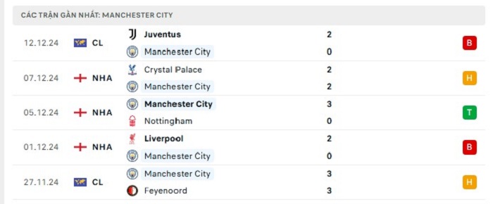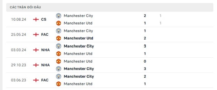 Bảng bóng đá trận đấu Manchester City vs Manchester United