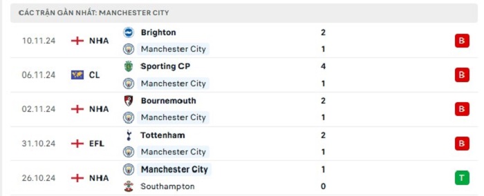 - Phong độ Manchester City