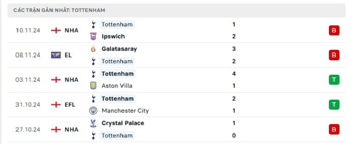 - Phong độ Tottenham