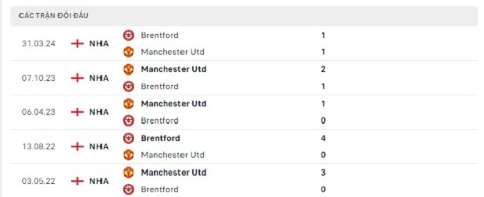 Bảng  bóng đá trận đấu Manchester United vs Brentford
