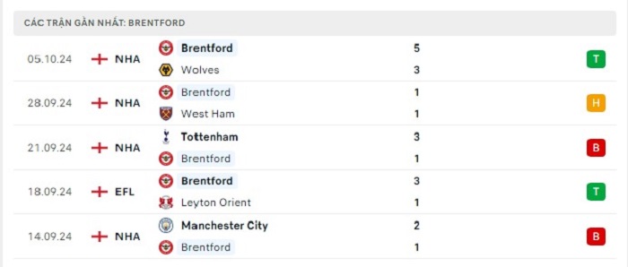 • Phong độ Brentford