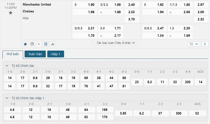 Soi kèo châu Á, kèo chấp Manchester United vs Chelsea