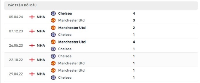 Lịch sử đối đầu của Manchester United vs Chelsea